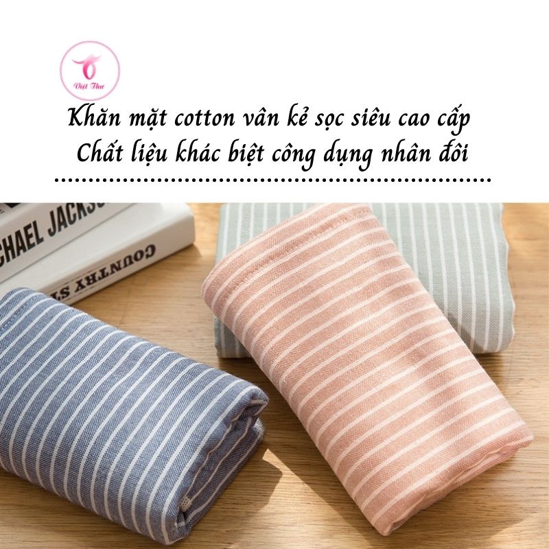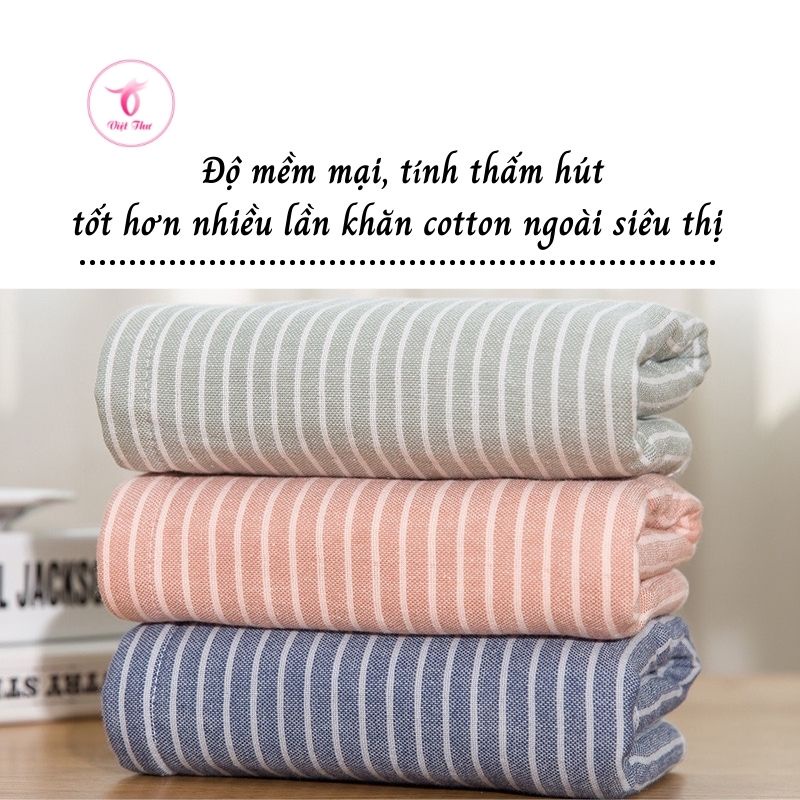 Khăn mặt cotton vân kẻ sọc cao cấp VIỆT THƯ, siêu mềm mịn, siêu thấm hút, siêu dày, 100gr, 35x75cm