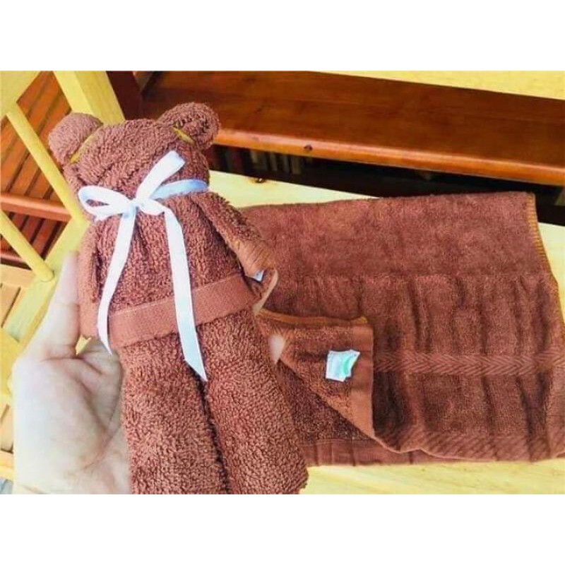 Nhà cửa & Đời sống > Đồ dùng phòng tắm > Khăn mặt, khăn tắm, áo choàng tắm > Áo choàng tắm || khăn mặt được xếp thành hình bé gấu dày và thấm hút tốtCòn hàng