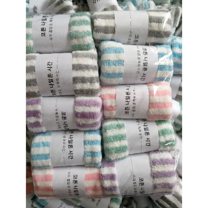 1 x Khăn mặt Hàn Quốc có dòng kẻ 50x30cm lông cừu (màu ngẫu nhiên ạ)