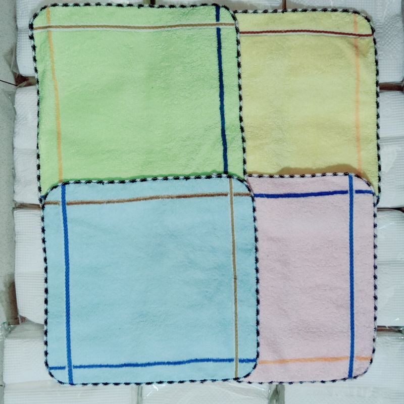 Khăn mặt dày dặn, bo viền, màu trơn in 4 đường viền xinh xắn.Chất vải mịn, thấm hút tốt, có thể làm khăn lau mặt, lau tay cho mọi lứa tuổi.