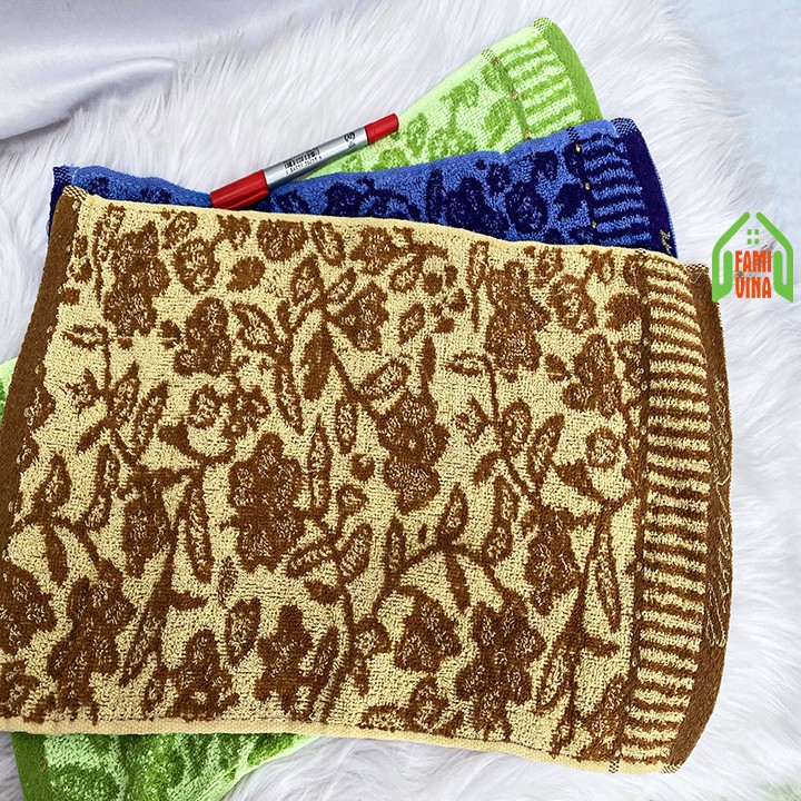 👉 Khăn mặt, khăn cotton hoa văn bông cúc cực đẹp, dày dặn, sang trọng, siêu mềm mịn, siêu thấm hút, kháng khuẩn, kháng nấm mốc an toàn cho da.👉 Màu khăn đẹp, sang trọng, không ra màu, không phai màu, dùng lâu không bị hôi.