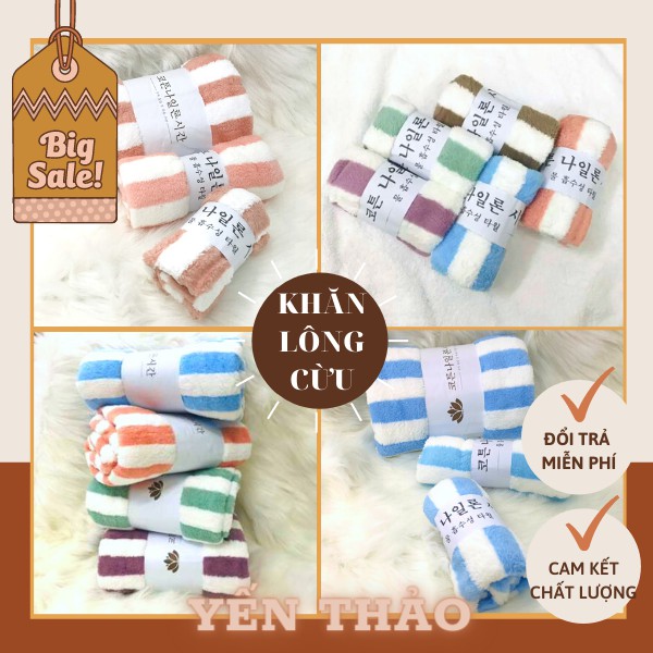 Giới thiệu KHĂN MẶT/KHĂN TẮM LÔNG CỪU HÀN QUỐC Cao Cấp Mềm Mịn, Dày Dặn Thấm Hút Tốt Sọc Thẳng To