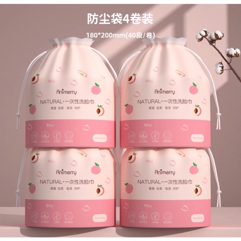 Giới thiệu Khăn mặt khô dùng 1 lần, tẩy trang lau khô lau ướt, khăn lau mặt trái đào siêu mềm, dai, mịn rửa mặt vệ sinh túi kute