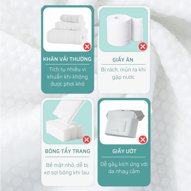 - Loại bỏ hoàn toàn cảm giác khô ráp, ẩm ướt, khó chịu của khăn mặt thường.