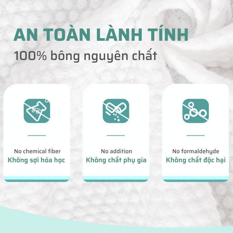 - Khăn có chất liệu 100% bông nguyên chất: Không phụ gia, không sợi hóa học, không chất độc hại