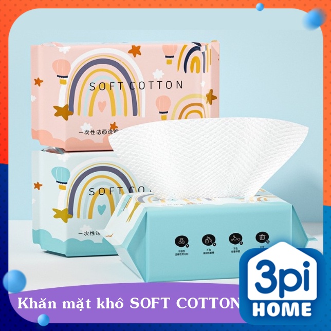 Khăn mặt khô SOFT COTTON dùng 1 lần lau khô, lau ướt - Túi rút 100 khăn