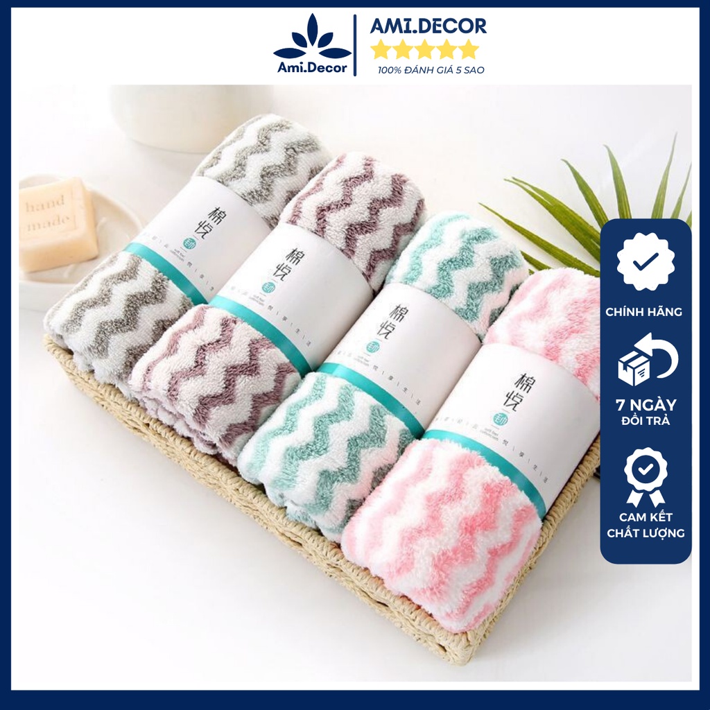 Giới thiệu Khăn Mặt Lông Cừu Hàn Quốc 50x30cm Siêu Thấm Hút Loại Có Dòng Kẻ - Khăn Xuất Hàn - AMI.Decor