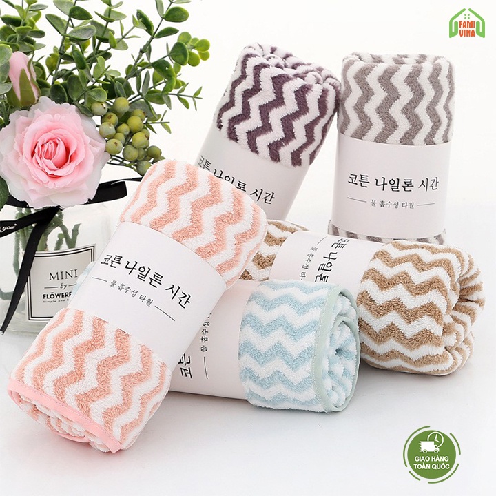 Khăn mặt lông cừu hàn quốc 34x75cm loại siêu mịn thấm hút màu sắc tươi sáng sạch sẽ an toàn cho da