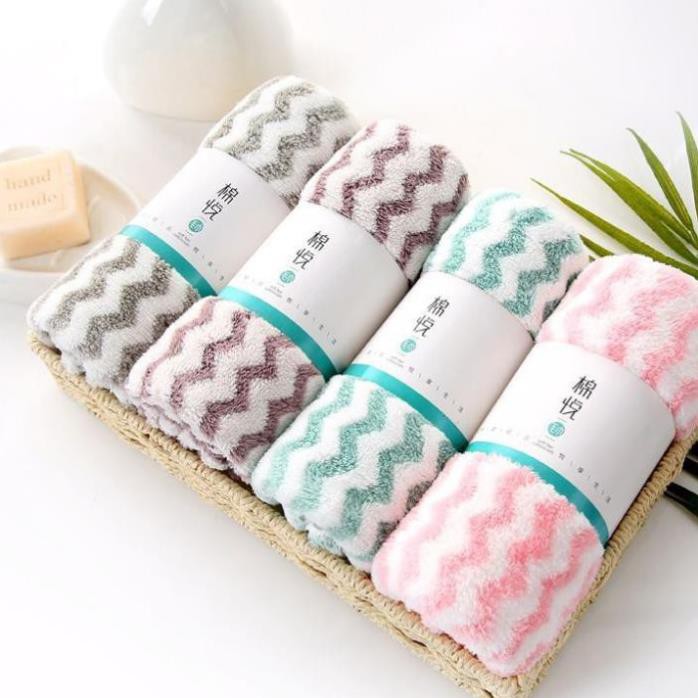Khăn Mặt Lông Cừu Hàn Quốc Siêu Thấm Hút Loại Có Dòng Kẻ