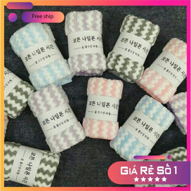 Nhà cửa & Đời sống > Đồ dùng phòng tắm > Khăn mặt, khăn tắm, áo choàng tắm > Khăn mặt || Khăn mặt lông cừu hàn quốc vân kẻ sọc mềm mại, thấm hút, không kích ứng da.Còn hàng