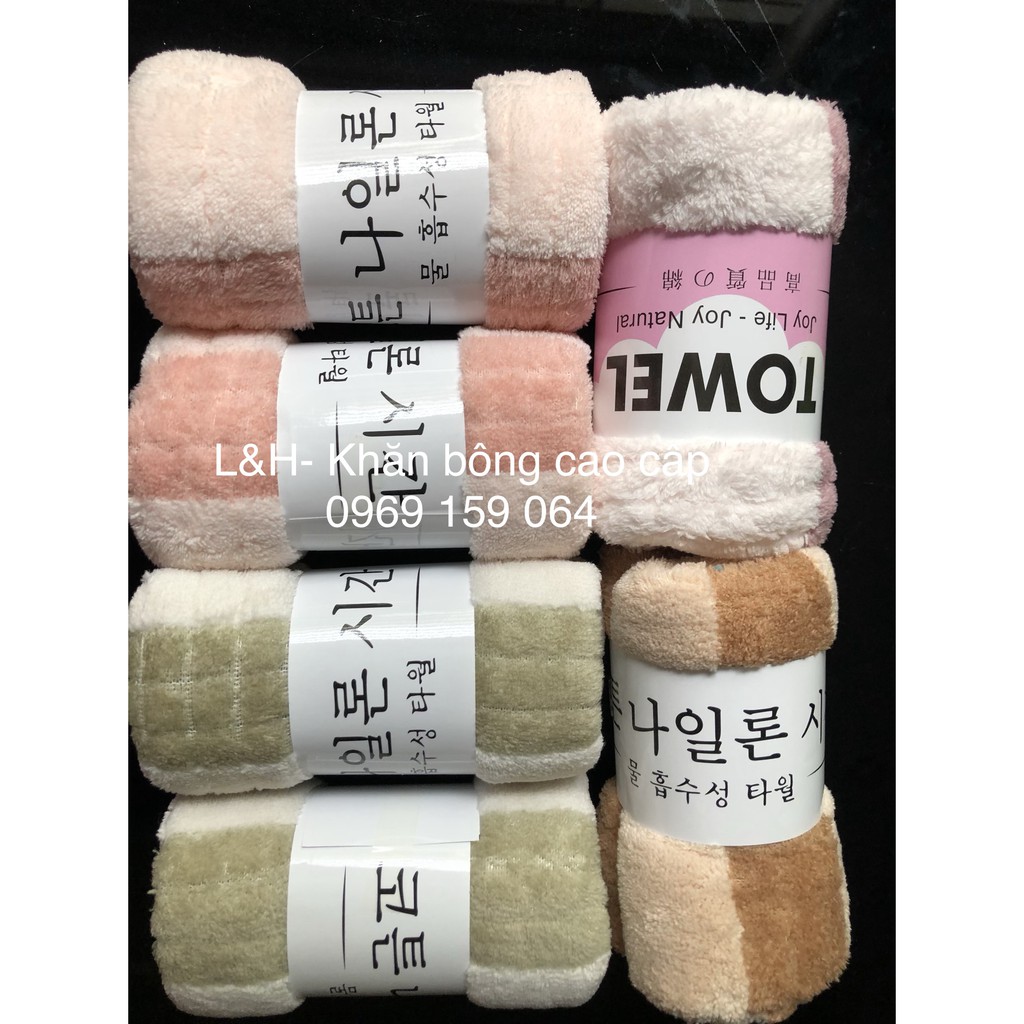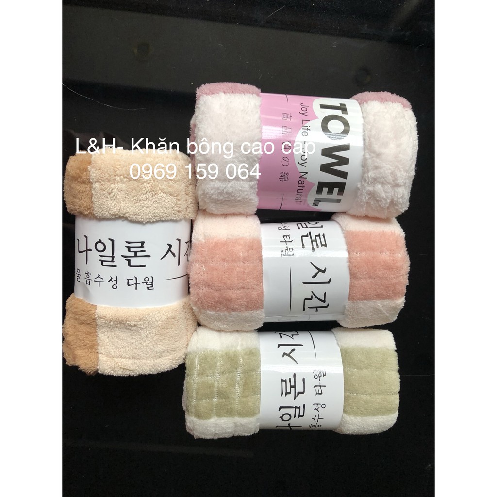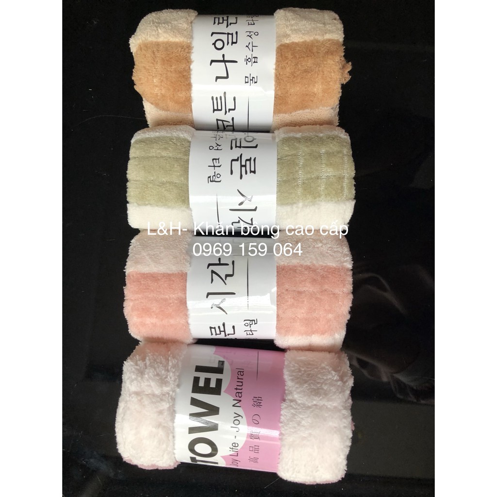 - Khăn Mặt Lông Cừu Xuất Hàn Vân Kẻ Sọc từ chất liệu sợi vải bông mềm mịn, siêu mềm, không bị xù lông, không phai màu