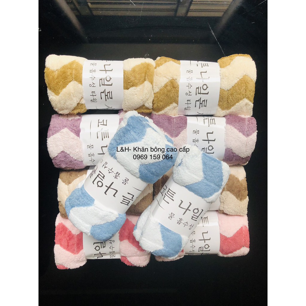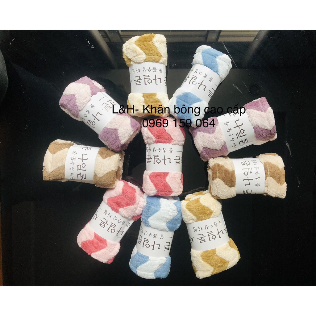 - Khăn Mặt Lông Cừu Xuất Hàn từ chất liệu sợi vải bông mềm mịn, siêu mềm, không bị xù lông, không phai màu