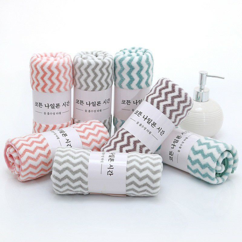Khăn mặt lông cừu vân kẻ sọc siêu mềm xuất Hàn kích thước 30x50 cm