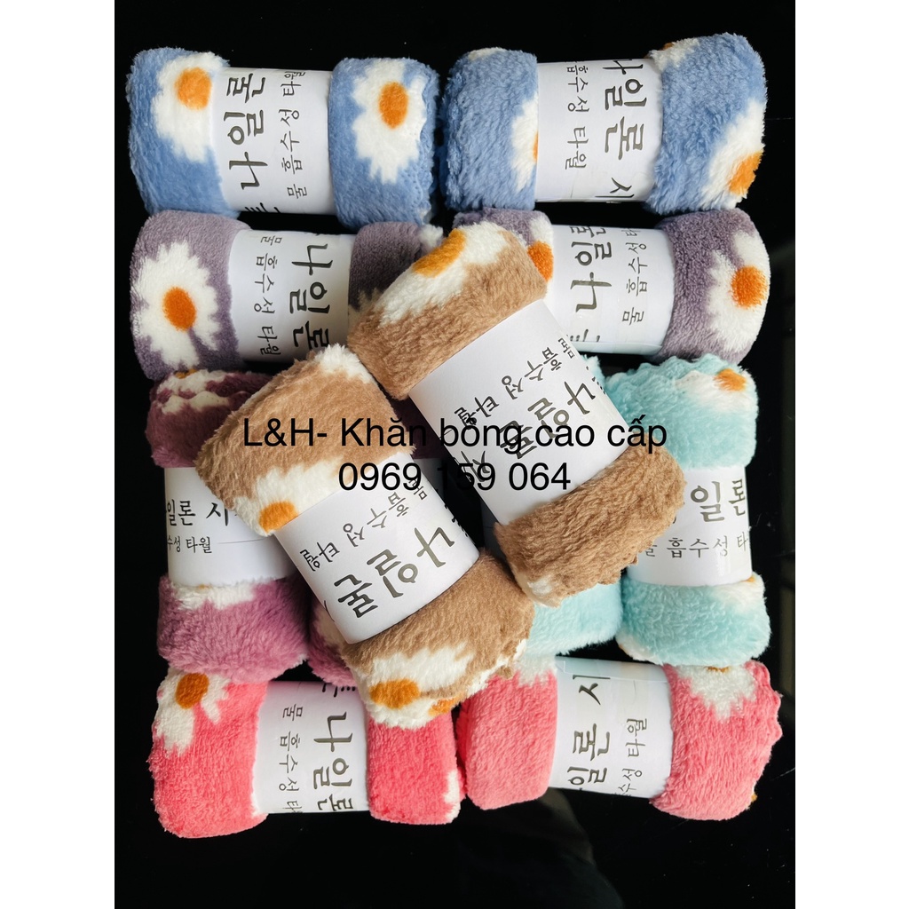 Khăn mặt lông cừu xuất hàn cao cấp, hoa cúc, KT 30x50cm- Mềm mịn, thấm hút nước tốt