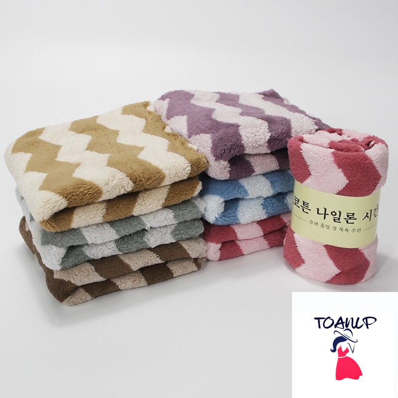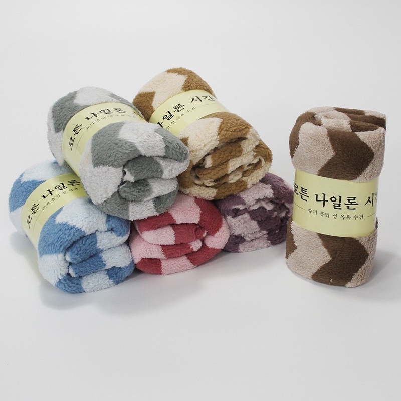 Nhà cửa & Đời sống > Đồ dùng phòng tắm > Khăn mặt, khăn tắm, áo choàng tắm > Khăn mặt || Khăn mặt Lông Cừu Xuất Hàn Kẻ Sọc To Khổ 25x50cm NEWTOWELLCòn hàng