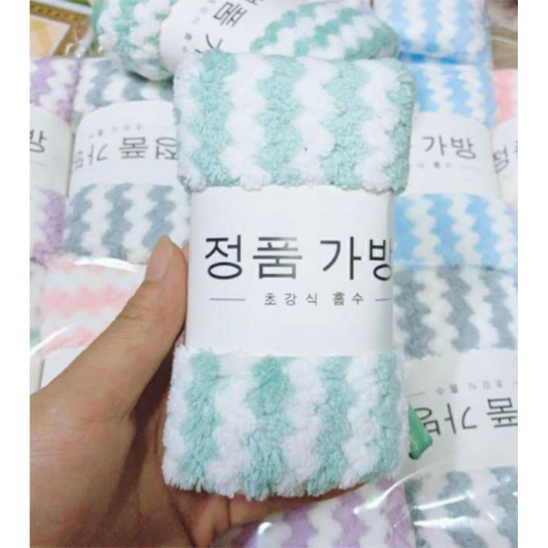 - Khăn Mặt Lông Cừu Xuất Hàn Vân Kẻ Sọc từ chất liệu sợi vải bông mềm mịn, siêu mềm, không bị xù lông, không phai màu