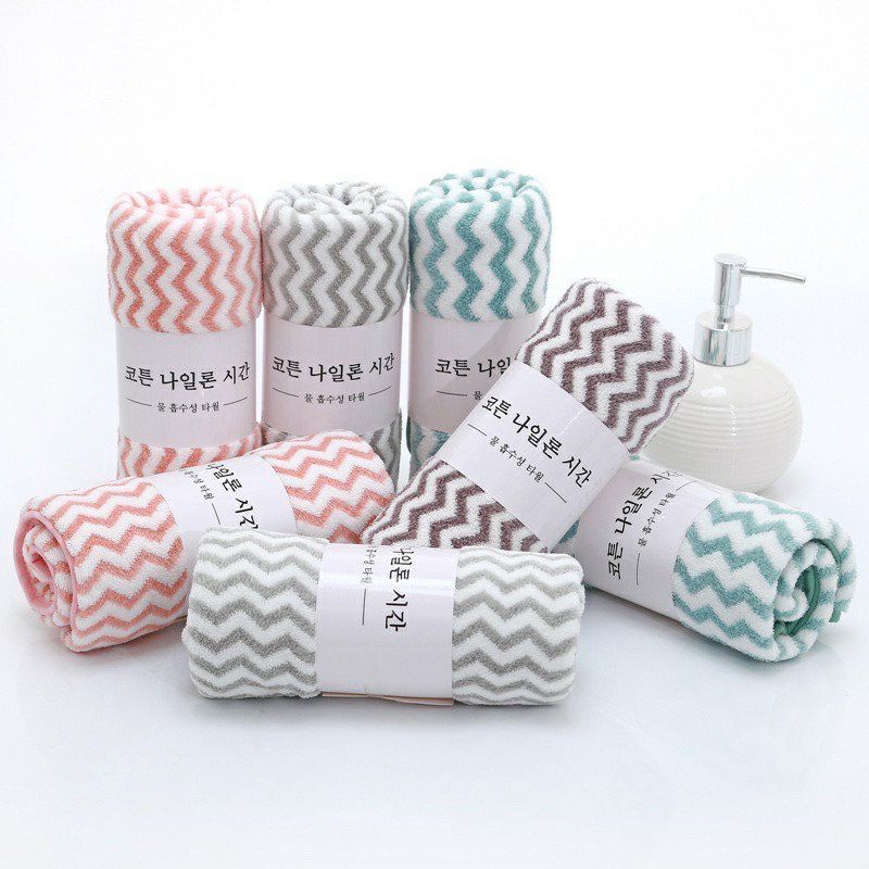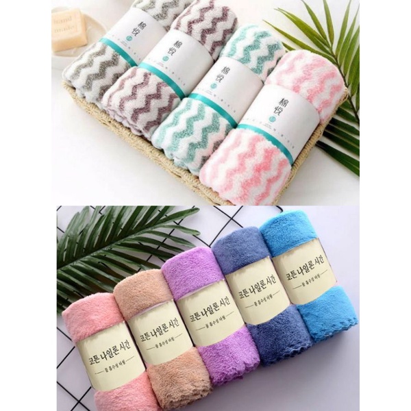 Giới thiệu Khăn Mặt Lông Cừu Xuất Hàn Siêu Mềm Mịn, Vân Kẻ Sọc/Màu Trơn 30x50cm