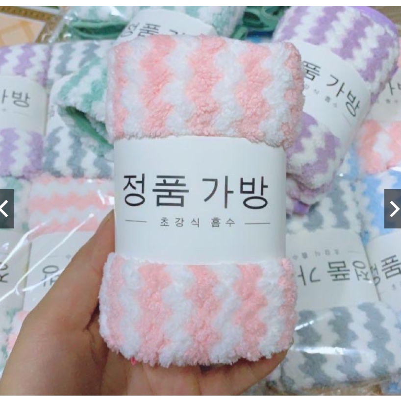 - Khăn Mặt Lông Cừu Xuất Hàn Vân Kẻ Sọc từ chất liệu sợi vải bông mềm mịn, siêu mềm, không bị xù lông, không phai màu