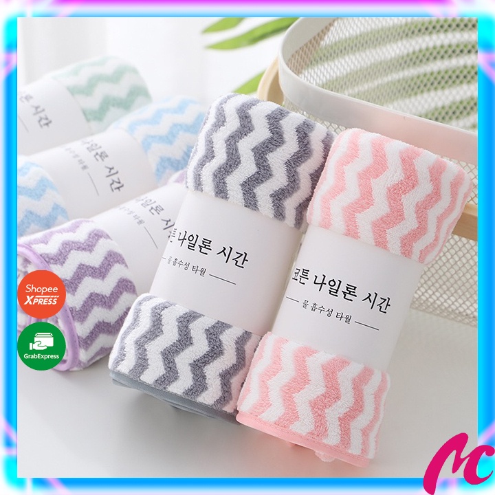 Nhà cửa & Đời sống > Đồ dùng phòng tắm > Khăn mặt, khăn tắm, áo choàng tắm > Khăn mặt || Khăn Mặt Lông Cừu Xuất Hàn Vân Kẻ Sọc Mềm Mịn_MC888Còn hàng