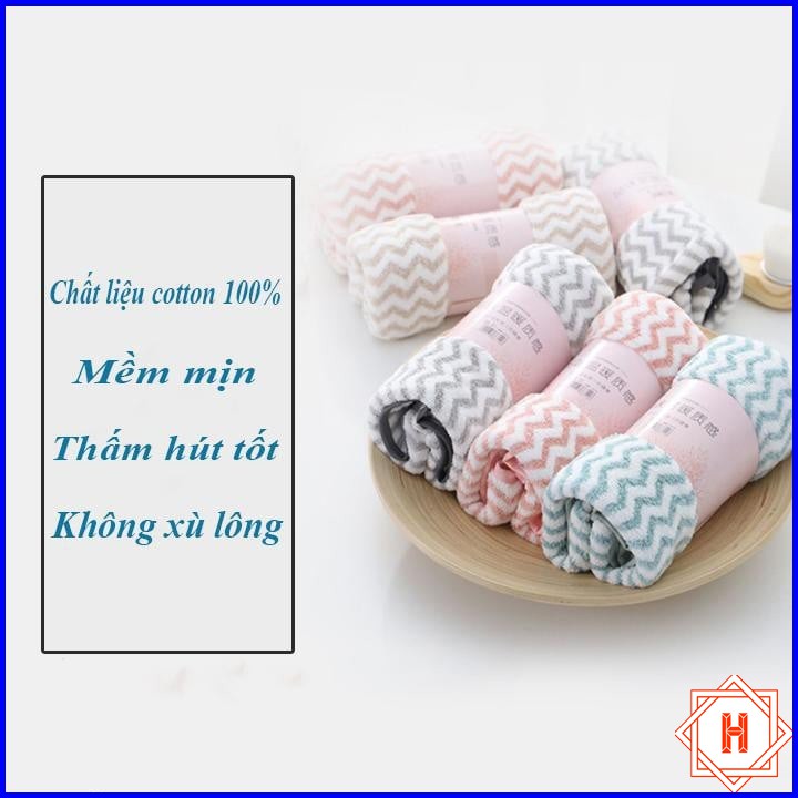 - Khăn Mặt Lông Cừu Xuất Hàn Vân Kẻ Sọc từ chất liệu sợi vải bông mềm mịn, siêu mềm, không bị xù lông, không phai màu