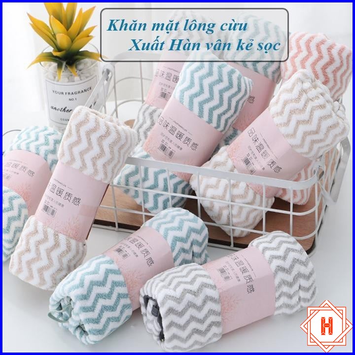 Nhà cửa & Đời sống > Đồ dùng phòng tắm > Khăn mặt, khăn tắm, áo choàng tắm > Khăn mặt || Khăn Mặt Lông Cừu Xuất Hàn Vân Kẻ Sọc Mềm Mịn { H }Còn hàng