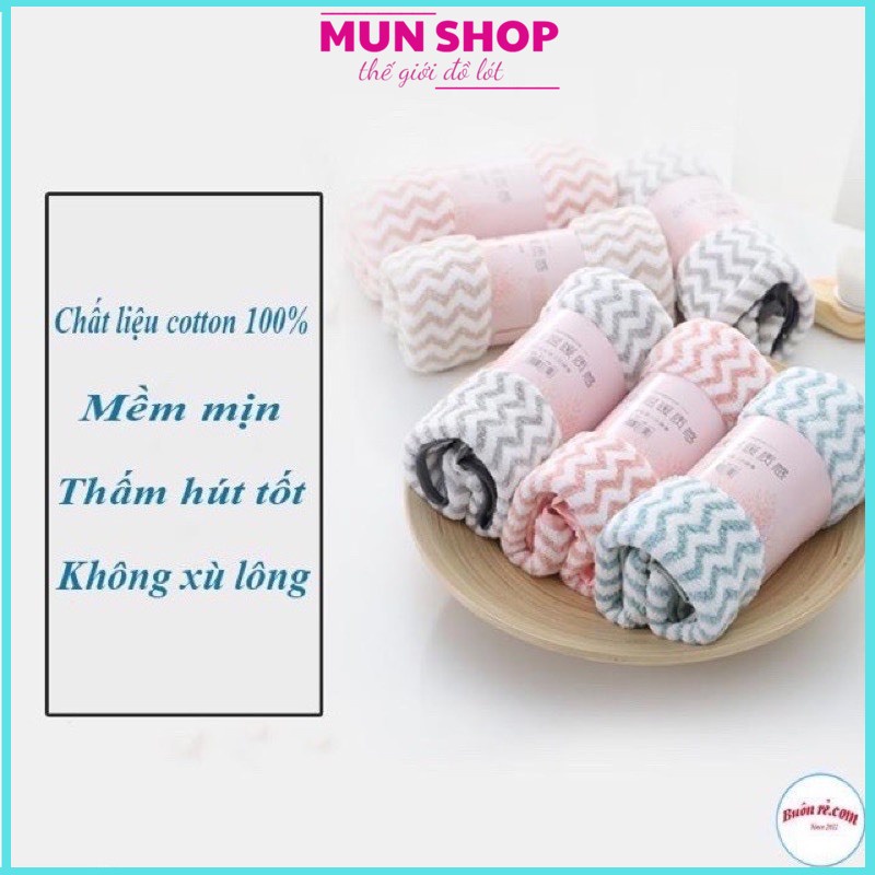 - Khăn Mặt Lông Cừu Xuất Hàn Vân Kẻ Sọc từ chất liệu sợi vải bông mềm mịn, siêu mềm, không bị xù lông, không phai màu