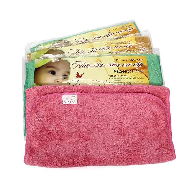 Khăn mặt siêu mềm EMYA 30×30* Khăn siêu mềm cao cấp Emya được sản xuất từ 80% sợi polyester và 20% sợi polyamide.