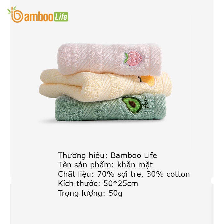 Khăn mặt sợi tre Bamboo Life BL041 họa tiết trái cây mềm mại, thấm hút, an toàn khi sử dụng, thân thiện với môi trường