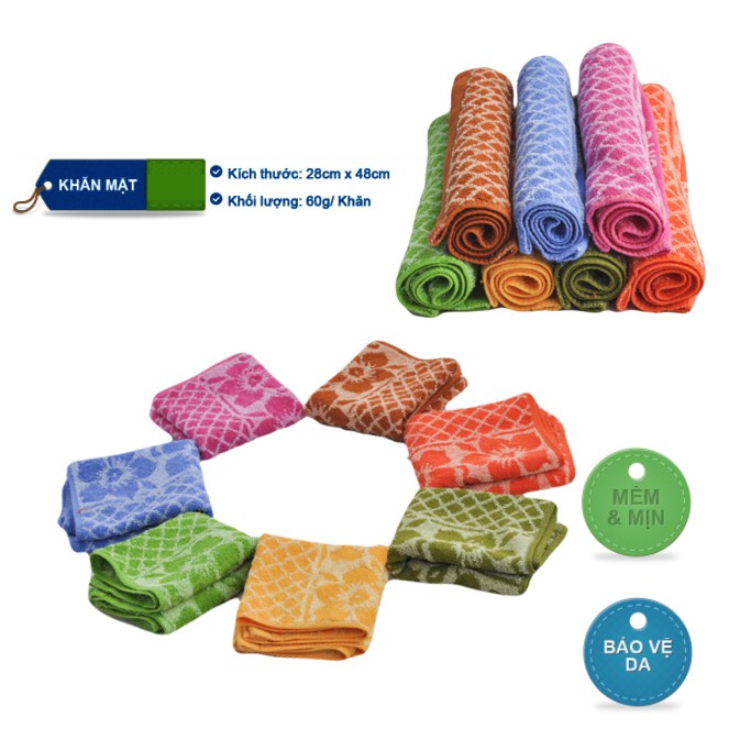 Với thiết kế màu sắc tươi sáng và kiểu dáng nhỏ gọn phù hợp với sở thích và nhu cầu của phần lớn người tiêu dùng. Sản phẩm không gây kích ứng da, sử dụng tiện lợi, vừa có thể làm khăn mặt, vừa có thể dùng làm khăn lau khô.