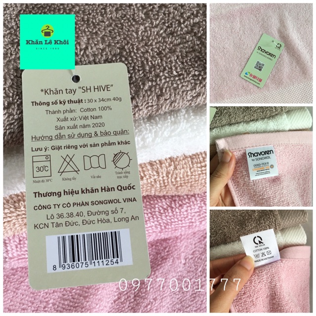 Nhà cửa & Đời sống > Đồ dùng phòng tắm > Khăn mặt, khăn tắm, áo choàng tắm > Khăn mặt || Khăn mặt Songwol chính hãng 100% cotton 30x34cm Nhiều màu - SH HIVE30Còn hàng