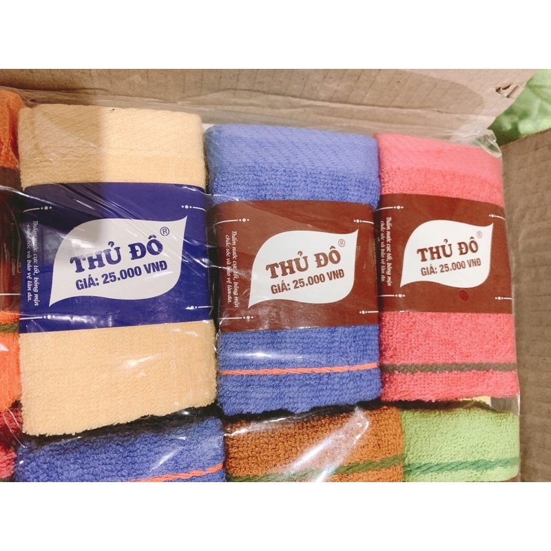 Khăn mặt sợi bông THỦ ĐÔ được làm bằng chất liệu vải cotton cao cấp.KHÔNG XÙ LÔNG KHÔNG PHAI MÀUKích thước 30x50