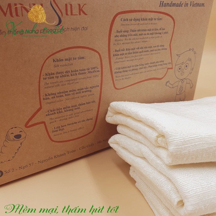 Lưu ý: Giặt khăn mặt tơ tằm bằng nước chanh pha loãng (không dùng xà phòng, chất tẩy). Phơi khăn trong bóng râm.