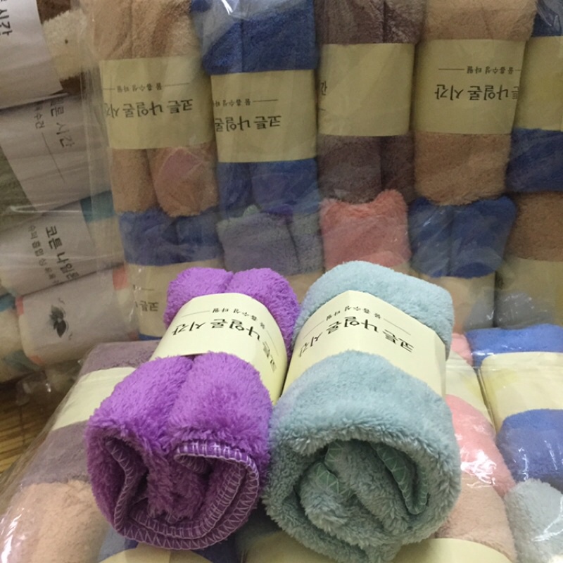 - Khăn Mặt Lông Cừu Xuất Hàn Vân Kẻ Sọc từ chất liệu sợi vải bông mềm mịn, siêu mềm, không bị xù lông, không phai màu