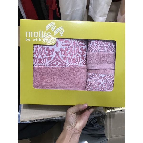 khăn moliss bộ gồm 3 khăn, chuyên dòng sợi tre cso cấp, dành riêng cho các nhãn hiệu làm quà tặng. chất liệu cotton nhập khẩu ấn độ, mềm, hút nước tốt, độ bền cao,màu tươi lâu, không phai màu, sử dụng 2 năm trở lên không xù lông, không cứng sợi, chất lượng số 1 việt nam.bộ 3 khăn.
