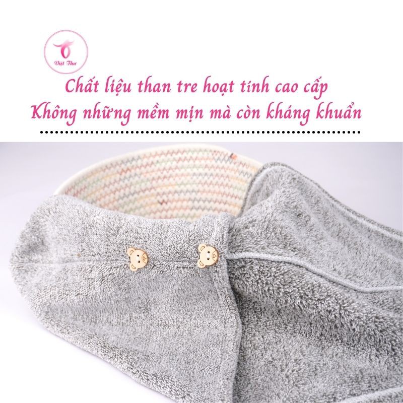 - Tên sản phẩm: Khăn ủ tóc nhanh khô VIỆT THƯ, khăn quấn tóc Than tre hoạt tính kháng khuẩn, siêu mềm, siêu thấm
