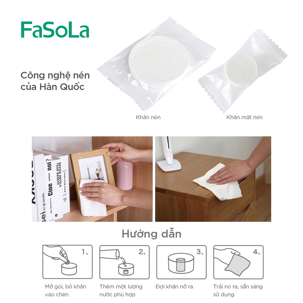Giới thiệu [Mã LIFEHLSALE2 giảm 10% đơn 0Đ] Bộ khăn nén gồm khăn tắm, khăn mặt dùng một lần FASOLA FSLJY-090-004