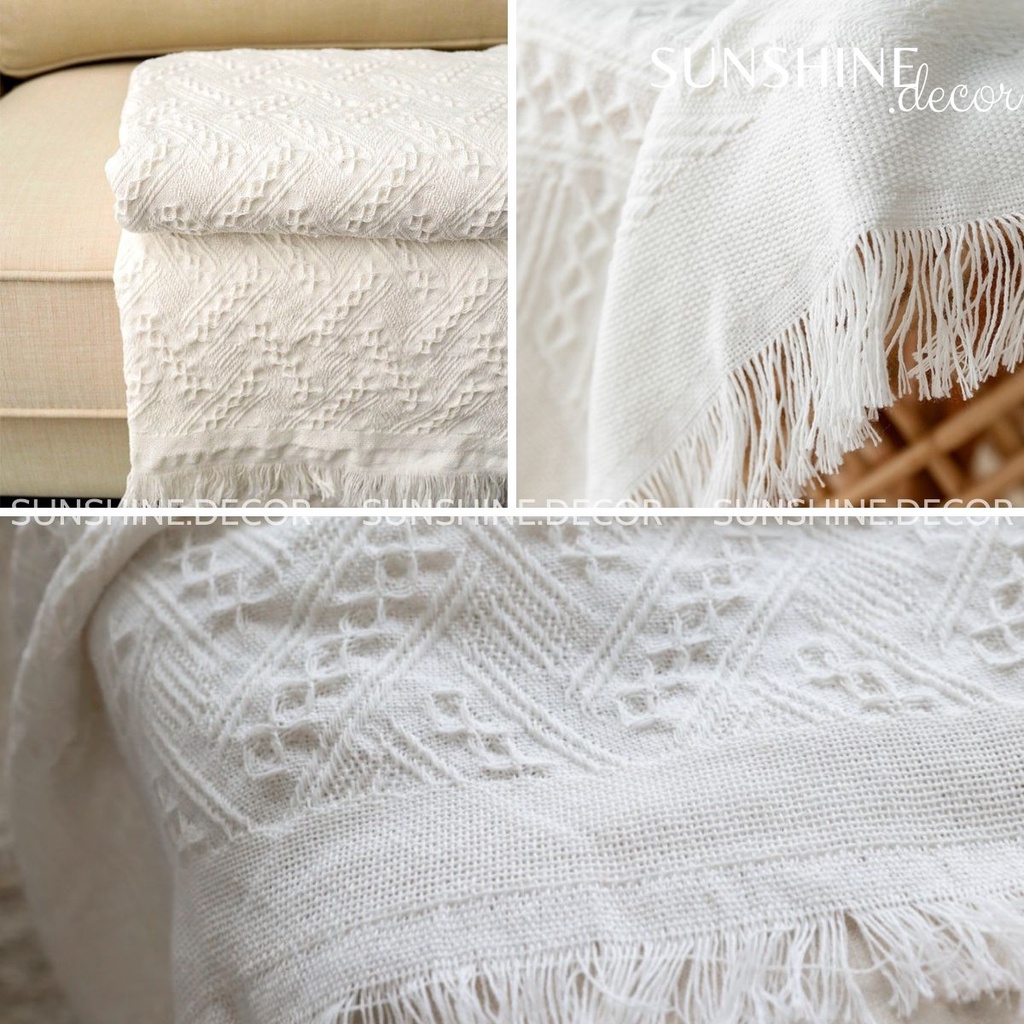 Nhà cửa & Đời sống > Nội thất > Ghế sofa || Khăn phủ sofa, chăn trải ghế sofa có tua rua màu trắng phong cách Bắc ÂuCòn hàng
