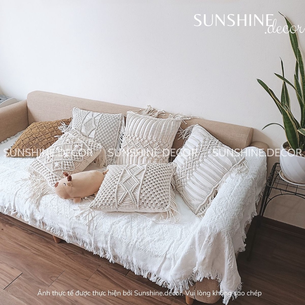 Khăn trải picnic sofa có màu trắng tinh khôi, có tua rua được làm 100% từ sợi bông tự nhiên thân thiện và lành tính với con người. Màu trắng trang nhã và sang trọng, thể hiện phong cách Bắc Âu, phong cách Bohemian.