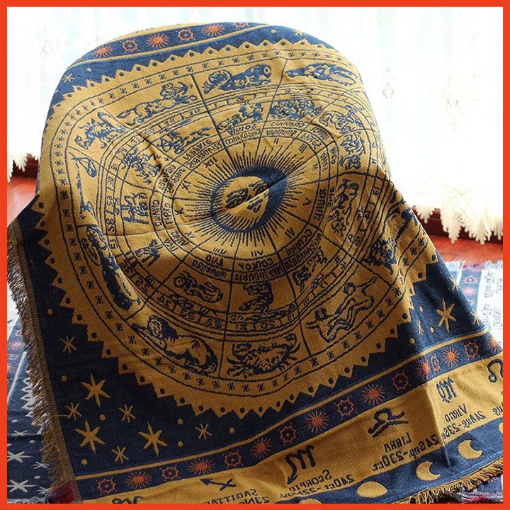 Khăn phủ sofa, Thảm thổ cẩm vintage cung hoàng đạo trang trí phòng khách kích thước 1m8x2m3