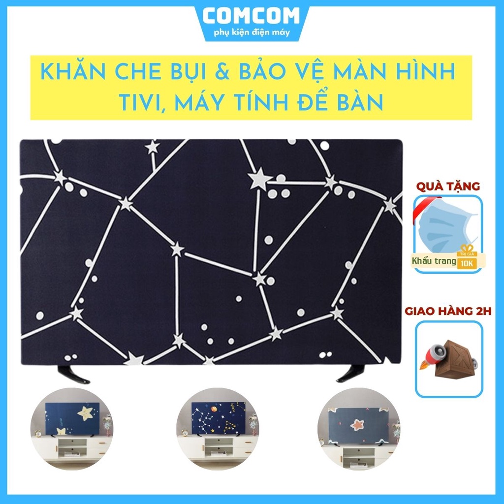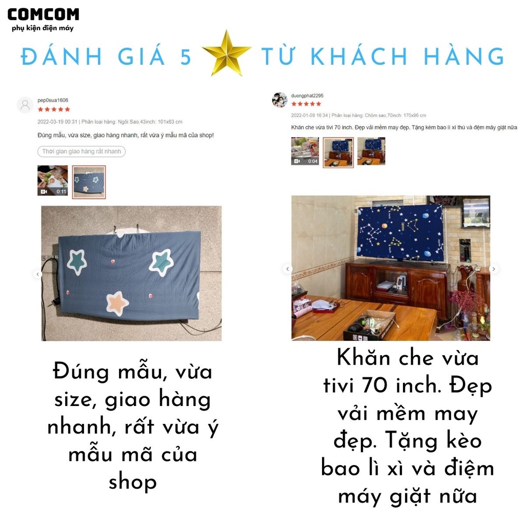 Khăn phủ tivi đủ kích thước - Rèm tivi chống bụi, vải che bụi cao cấp - Họa tiết màn che tivi dễ thương, bắt mắt