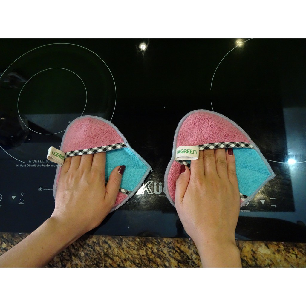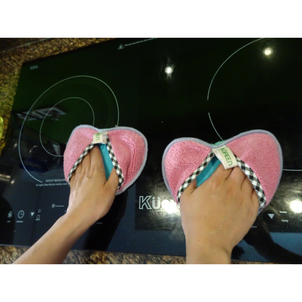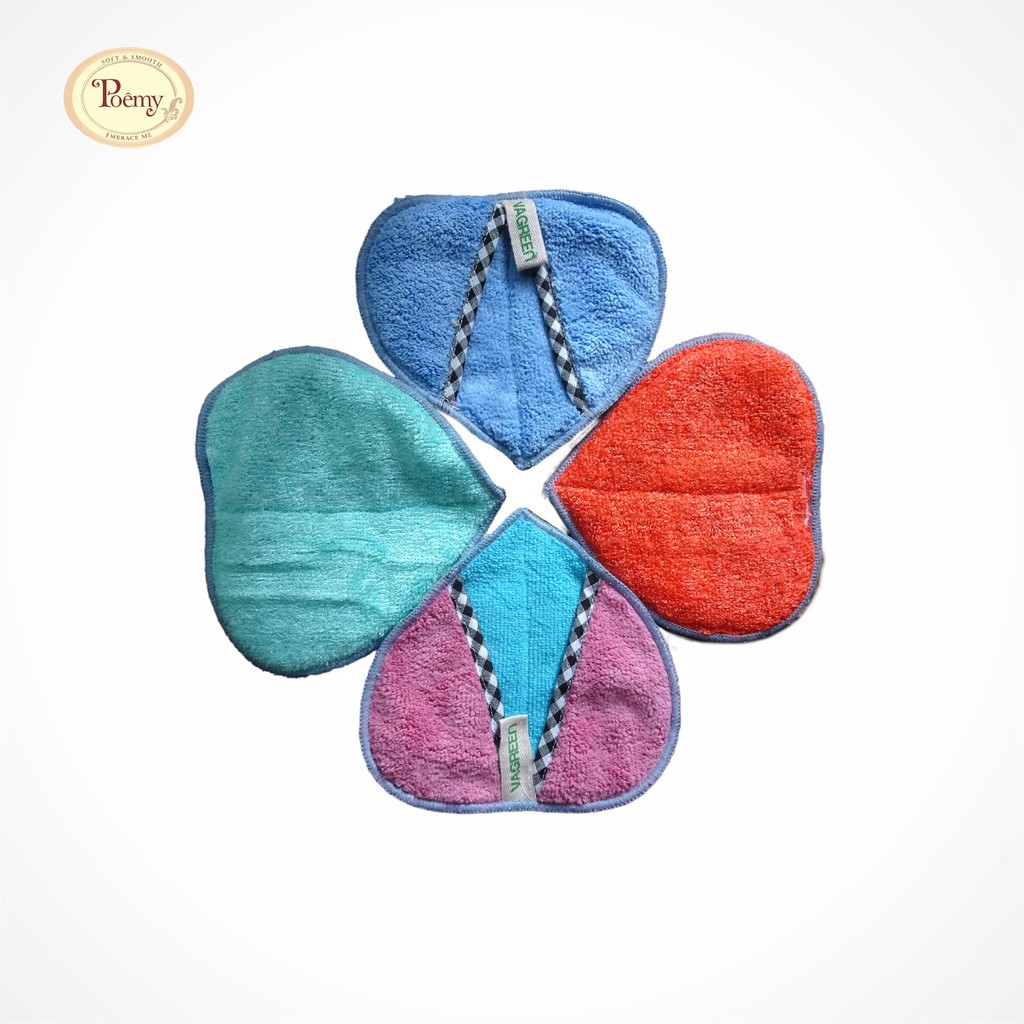 🌸Cặp Khăn Bắt bếp hình trái tim poêmy.🌻Được làm kết hợp bằng sợi Microfiber và Vagreen có thể dùng kết hợp để cầm nắm, nhấc đồ vật nóng và lau bề mặt vết bẩn.
