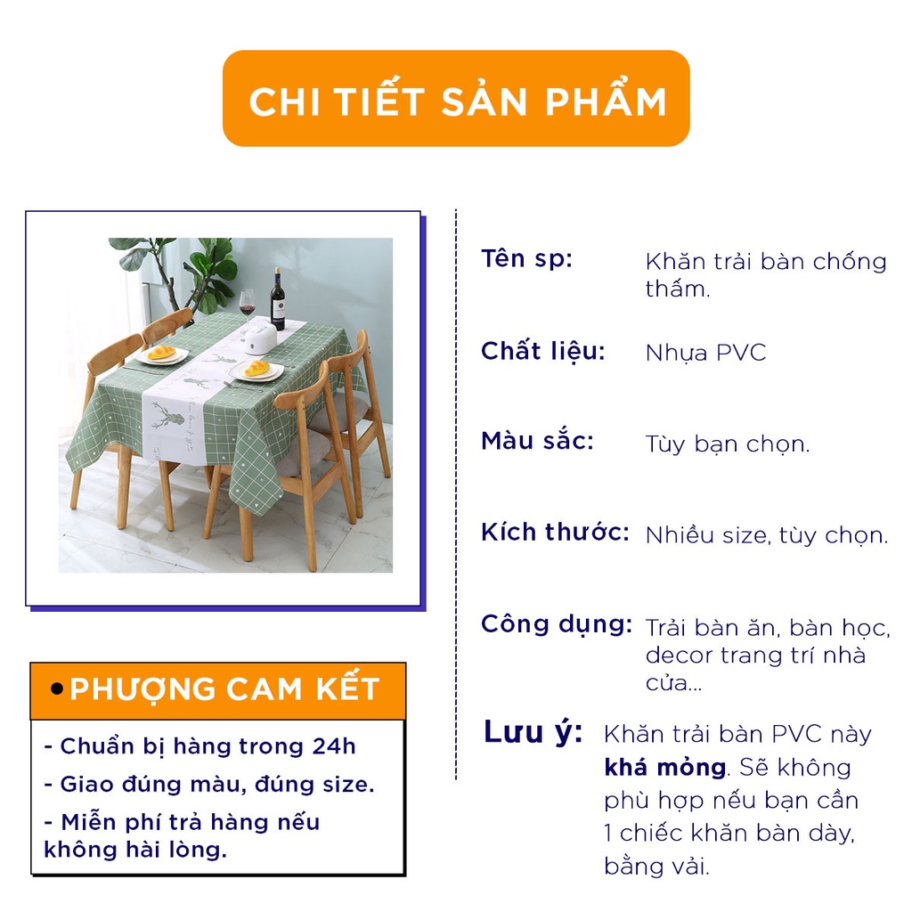 1. KHĂN TRẢI BÀN này có chất liệu là nhựa PVC, nó khá mỏng tuy nhiên với mức giá này thì quá tuyệt vời. Đây là nhận xét thật tâm của shop.
