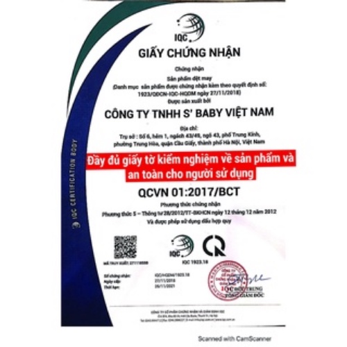 - Khăn quấn đầu S'BABY có đầy đủ giấy tờ kiểm nghiệm về chất lượng sản phẩm.