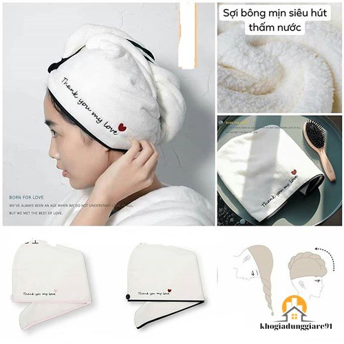 Thiết kế dạng mũ đội nên rất gọn nhẹ, dễ giặt, thích hợp cho cả tóc ngắn và tóc dài. Tiết kiệm rất nhiều thời gian cho những cô nàng bận rộn bởi khăn sử dụng đơn giản, không mất thời gian như dùng máy sấy hoặc hong khôbằng quạt…mà lại gọn gàng xinh xắn chứ