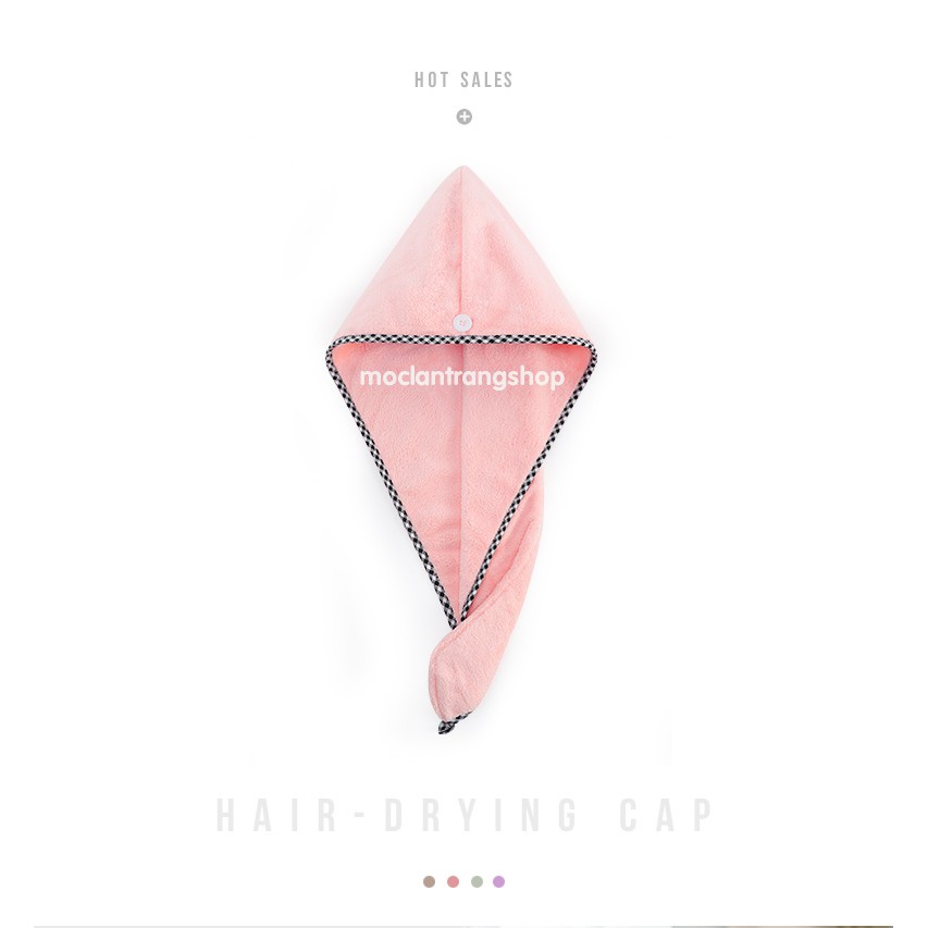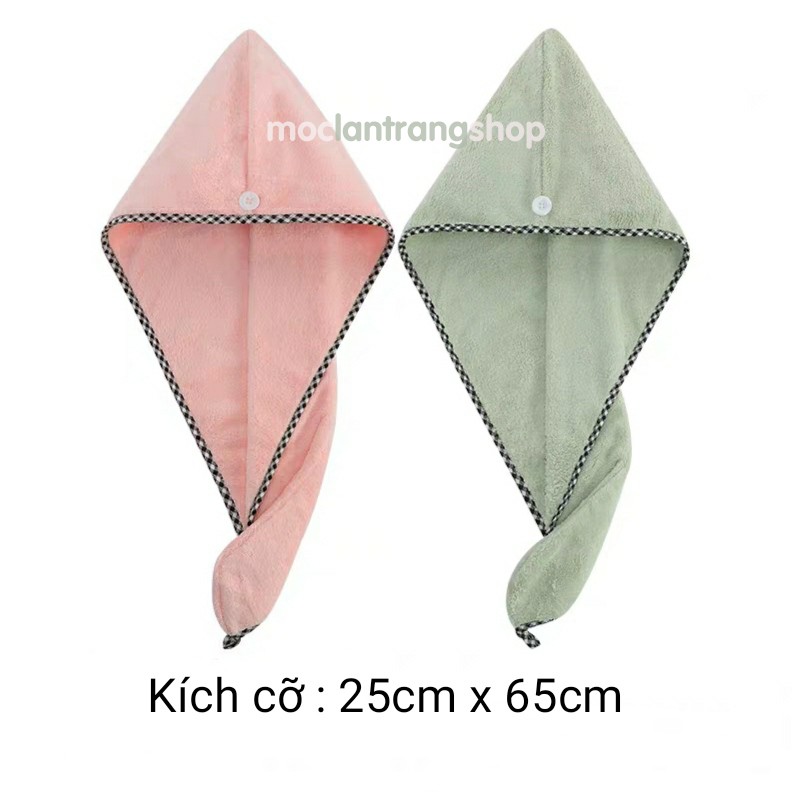 Khăn quấn lau đầu ủ tóc chuyên dụng siêu thấm cài khuy, hình cánh diều lông mềm