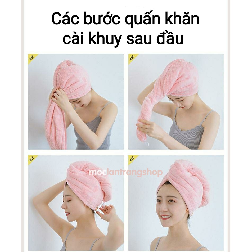 Giới thiệu Khăn quấn lau đầu ủ tóc chuyên dụng siêu thấm cài khuy, hình cánh diều lông mềm