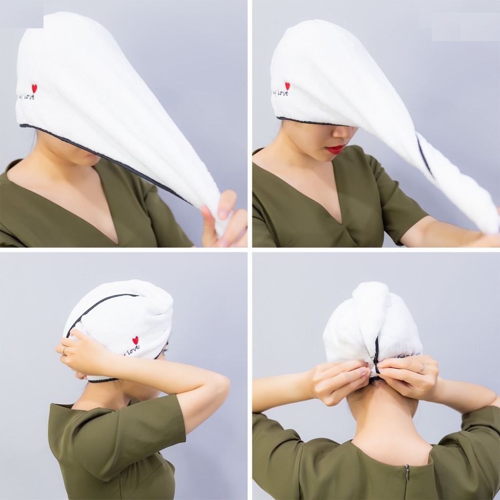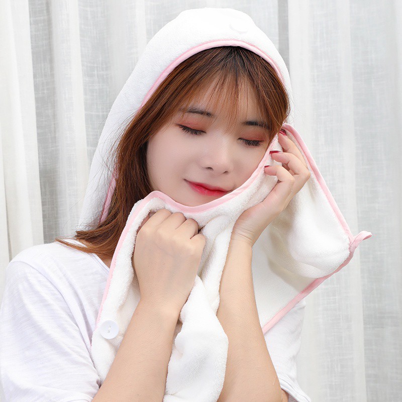 Thiết kế dạng mũ đội nên rất gọn nhẹ, dễ giặt, thích hợp cho cả tóc ngắn và tóc dài. Tiết kiệm rất nhiều thời gian cho những cô nàng bận rộn bởi khăn sử dụng đơn giản, không mất thời gian như dùng máy sấy hoặc hong khô bằng quạt…mà lại gọn gàng xinh xắn chứ
