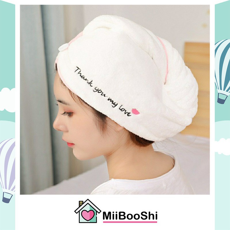 Khăn quấn tóc nhanh khô siêu thấm có nút cài mềm mịn thấm hút tốt MiibooShi PVN17577