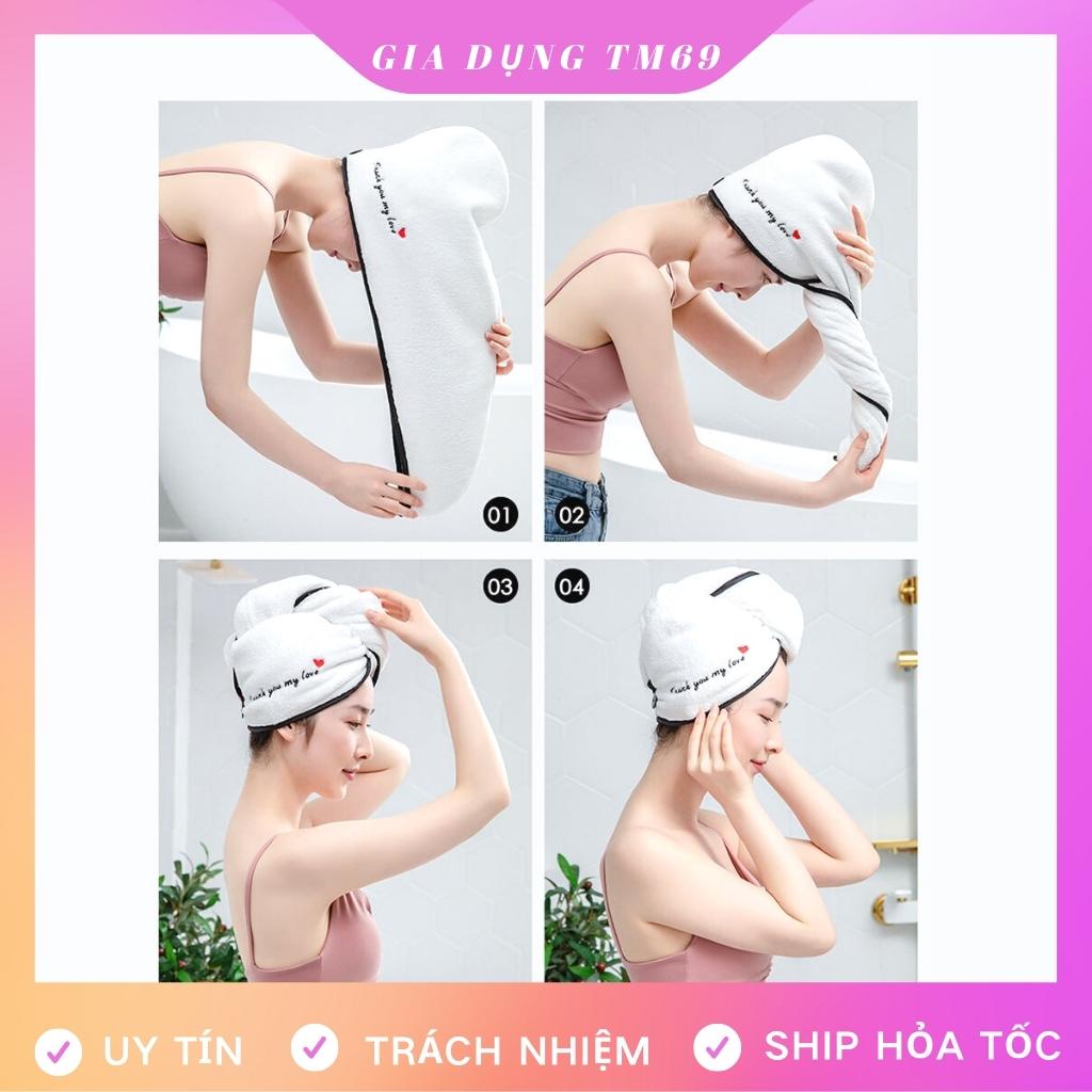 Khăn Quấn Tóc Ủ Nhanh Khô Gội Trùm Quấn Đầu Thời Trang Nữ Siêu Thấm Đa Năng Có Nút Cài, Mũ Ủ Tóc Tại Nhà