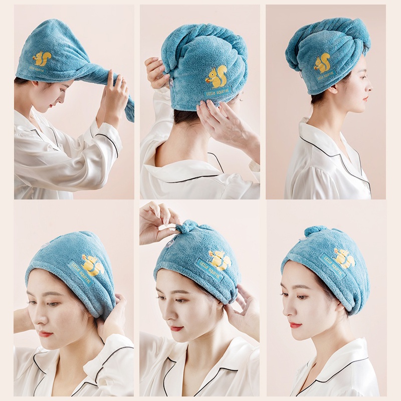 – Sau khi gỡ khăn ra khỏi đầu, tóc của bạn gần như được hút khoảng 70% nước ngấm vào những sợi bông dày đặc trên khăn, giúp bạn dễ dàng sấy khô nhanh chóng và tiện lợi